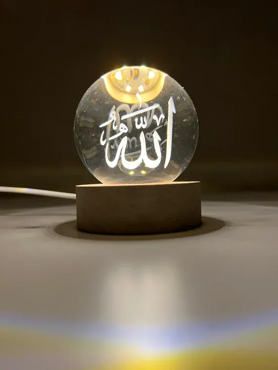 3D Crystal Ball LED Night Lamp – Islamic Calligraphy of Allah ﷻ & Muhammad ﷺ  USB Powered