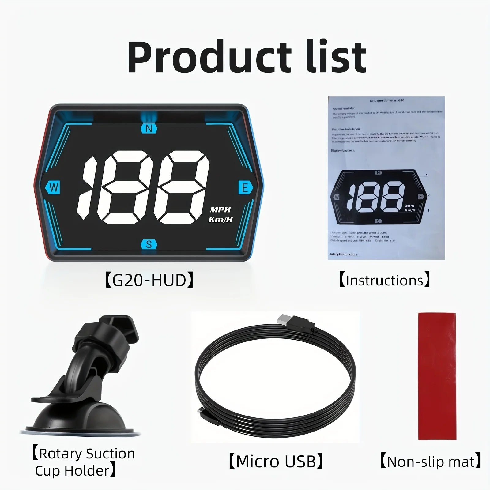 G20 Car Head-Up Display (HUD) Speedometer with Compass & Ambient Light – MPH/KMH